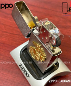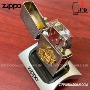 Chất liệu vỏ đồng thau, nền mạ chrome xước ngang và với thiết kế ốp nổi biểu tượng của U.S. Marine Corp trên bề mặt của chiếc bật lửa Zippo, nhìn rất mạnh mẽ khi sở hữu được chiếc bậc lửa này.