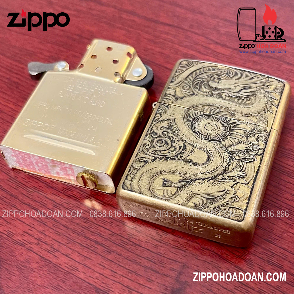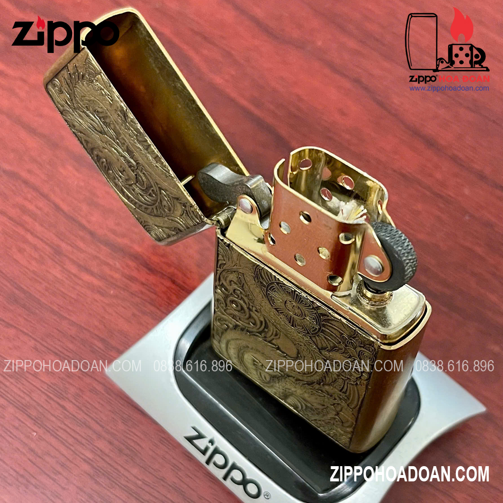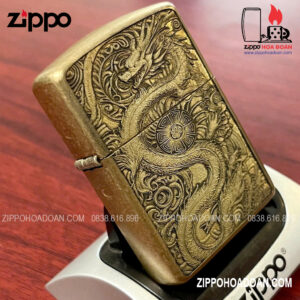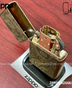 Hôm nay, Zippo Hoa Đoàn xin giới thiệu với anh em một trong những sản phẩm của dòng trang trí này đó chính là chiếc Zippo “Armor vỏ dày màu vàng xước bụi” với rồng được khắc 3D hoa văn tinh xảo